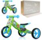 Wenn Sie also ein Geschenk für einen Jungen suchen, ist diese Option perfekt.. Verschiedene Radmontageoptionen ermöglichen die Anpassung an die Fähigkeiten Ihres Kindes. Anfangs ist es ein fantastisches Dreirad. Die weit auseinanderliegenden Räder an der Hinterachse geben Ihrem Kind Sicherheit. Sobald Ihr Kind die Grundfertigkeiten beherrscht, können Sie die Räder einfach austauschen. Dann wird es zu einem ganz normalen Laufrad.