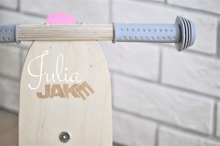Und all das in einem einzigartigen Rahmen. Das JAKE Bike ist eine Garantie für einzigartiges Design. Klassisches Holz sowie Elemente in Rosa und Grau wirken unglaublich stilvoll.