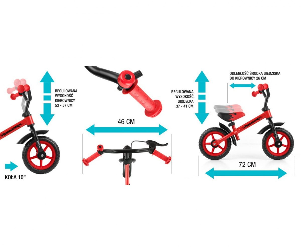 Dragon Milly Mally ist eine gute Wahl für Kinder, die gerade mit dem Fahrradfahren beginnen. Es wurde so konzipiert, dass sich selbst ein kleines Zweijähriges darauf sicher und wohl fühlt. Dank der Verstellmöglichkeit lassen sich Sattel und Lenker an die Körpergröße des Kindes anpassen. Keine Pedaledadurch wird es einfacher, sich auf Gleichgewicht, Koordination, Richtung und die Anpassung der Geschwindigkeit an die Gegebenheiten zu konzentrieren.