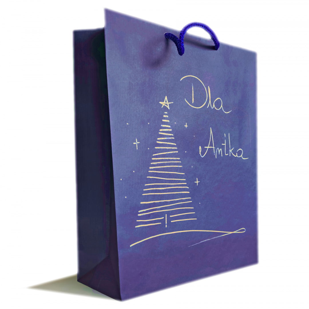 Papier-Geschenktasche mit Weihnachtsbaum A4 Blau
