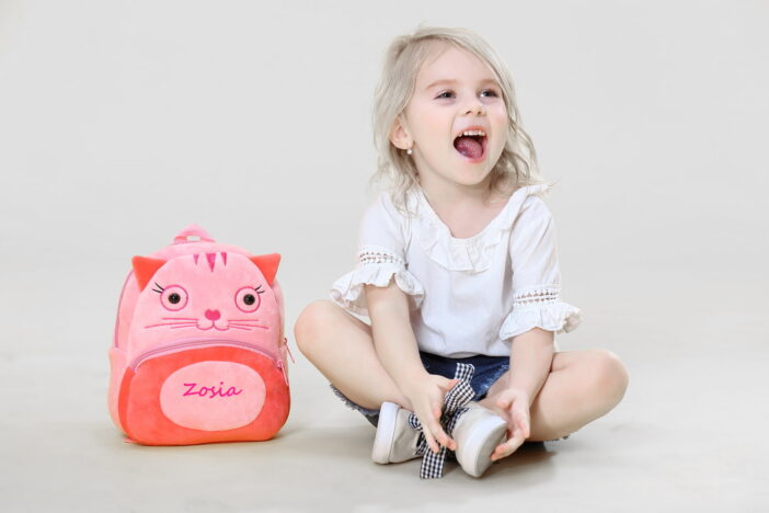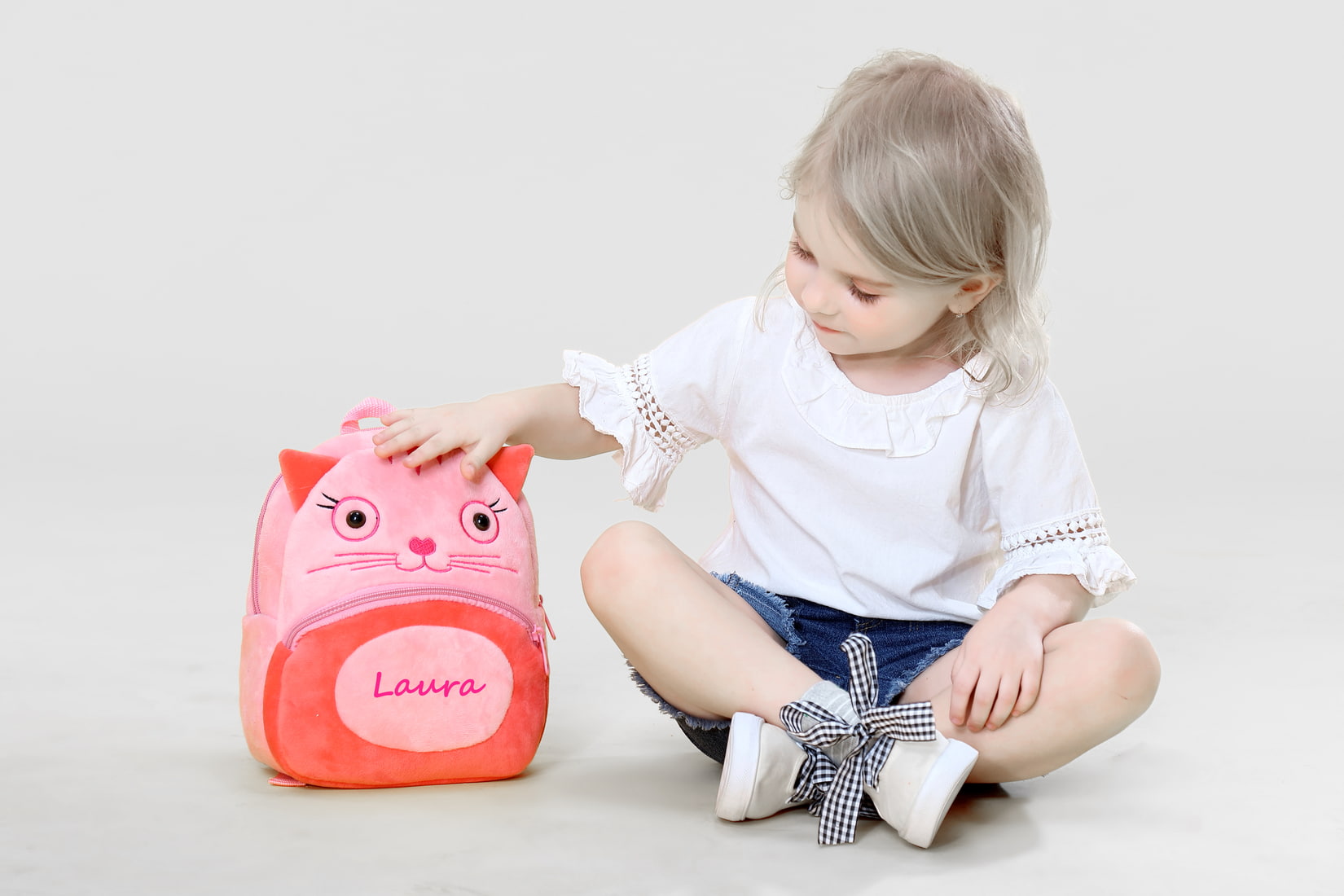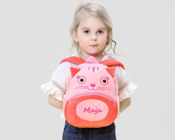Jedes Elternteil weiß, dass der Moment, in dem ein Kind seinen eigenen Rucksack trägt, ein ganz besonderer Augenblick voller Stolz und Emotionen ist! Dieses rosa Kätzchen mit dem Namen Ihrer Tochter symbolisiert kleine Schritte hin zu Unabhängigkeit und Verantwortung.