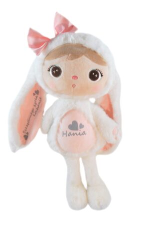Suchen Sie das perfekte Geschenk zur Geburt oder Taufe? Dieser personalisierte weiße Hase ist die ideale Wahl! Er ist einzigartig und persönlich und wird mit seiner Weichheit jedes kleine Mädchen begeistern!