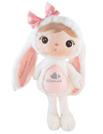 Gibt es etwas Rührenderes als kleine Hände, die ihren ersten Freund umarmen? Dieser bezaubernde, personalisierte weiße Metoo-Hase ist nicht einfach nur ein Kuscheltier – er ist der Beginn einer wunderbaren Freundschaft, die jahrelang hält! Das himmlisch weiche Material macht den Hasen zum perfekten Begleiter für Abenteuer am Tag und zum abendlichen Einschlafen. Die Personalisierung mit einem Namen auf dem Bauch und einer Geburtsurkunde auf den Ohren macht dieses Geschenk absolut einzigartig – so besonders wie das Mädchen, das es erhält!