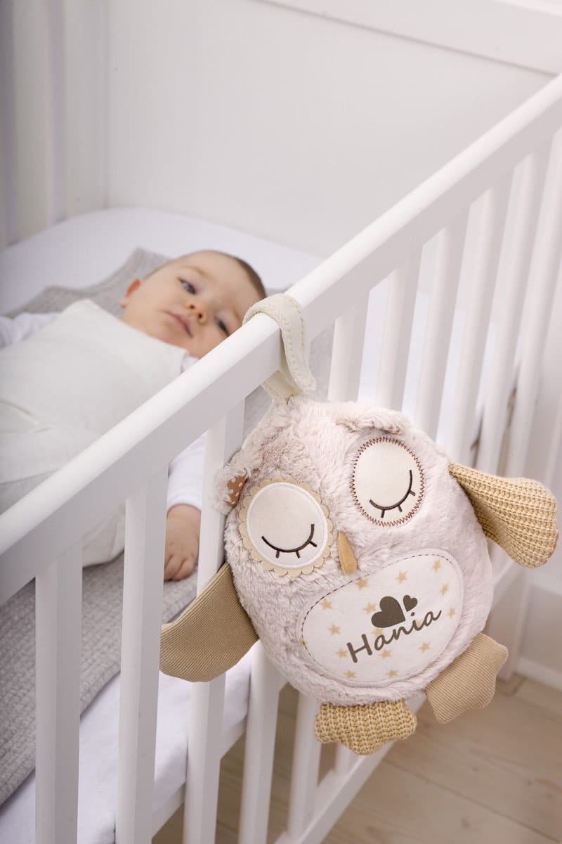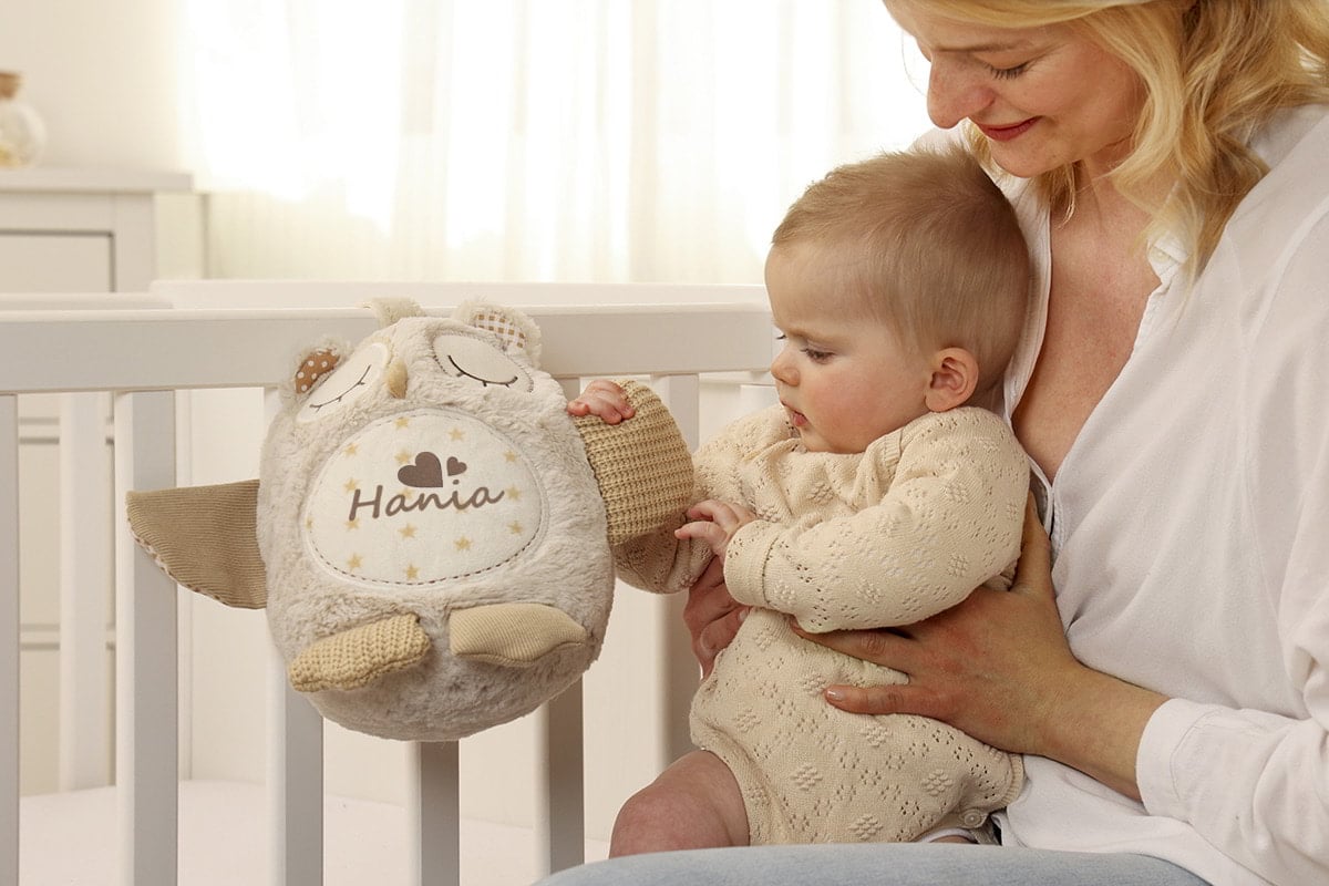 Stellen Sie sich folgende Szene vor: Es ist mitten in der Nacht, Ihr Baby fängt an zu weinen. Noch bevor Sie die Augen öffnen können, hat der intelligente Sensor der Eule das Geräusch bereits erkannt und spielt automatisch die Melodie ab, die Ihrem Kleinen schon einmal beim Einschlafen geholfen hat. Auf dem Bauch der Eule sehen Sie im sanften Licht des Nachtlichts den Namen Ihres Kindes und eine liebevolle Widmung von Oma, Opa oder den Paten. Beim Anblick seines persönlichen Freundes fühlt sich das Kind geborgen und beruhigt sich schnell. Nach einer Weile hören Sie nur noch den ruhigen Atem Ihres schlafenden Babys. Und Sie? Sie können weiterschlafen; Vielleicht haben Sie gar keine Zeit, richtig wach zu werden! Lieferung innerhalb von 24 Stunden – bei Bestellungen bis 13:30 Uhr!