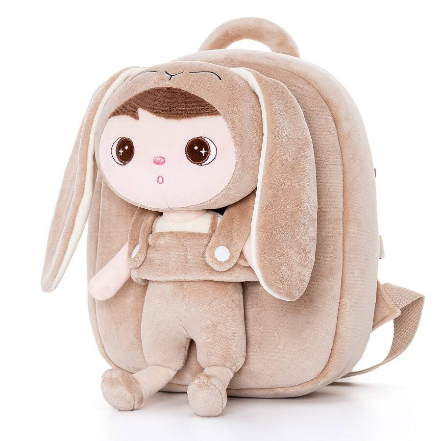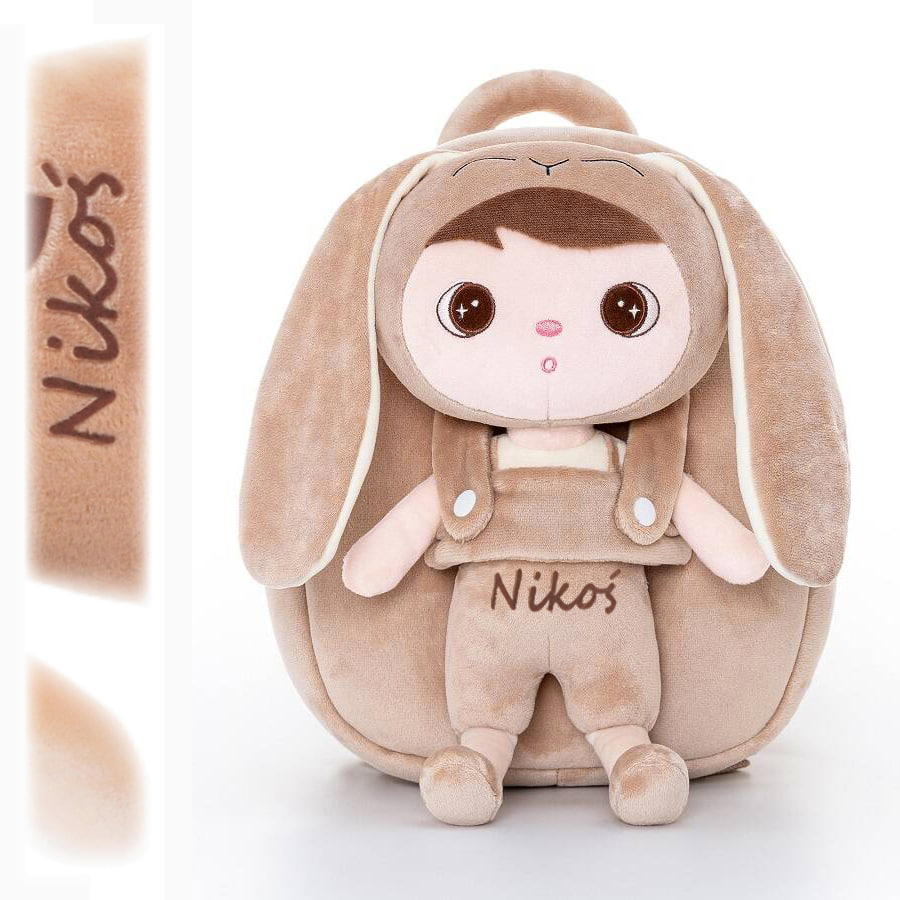 🎒 METOO RUCKSACK, BEIGER HASE MIT NAMENSSCHILD 🎒