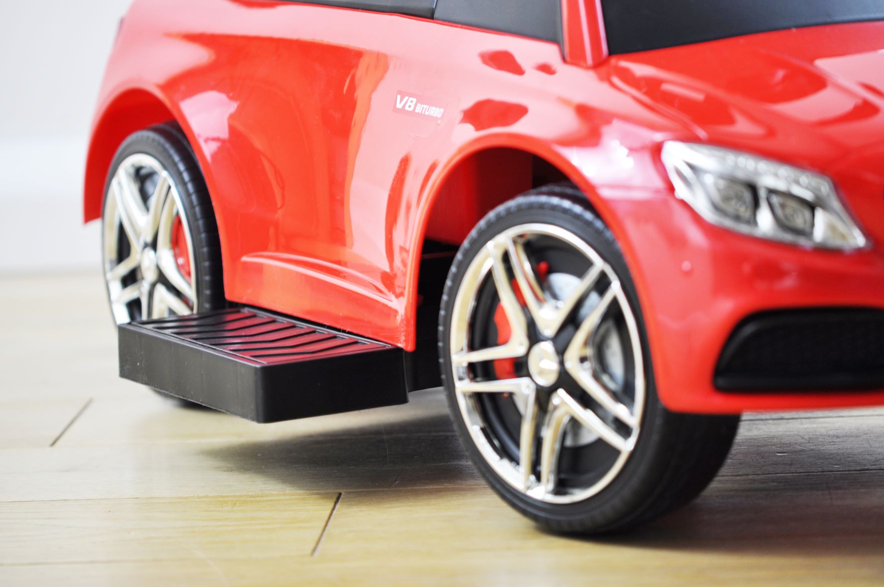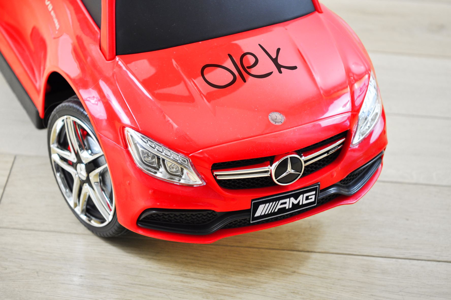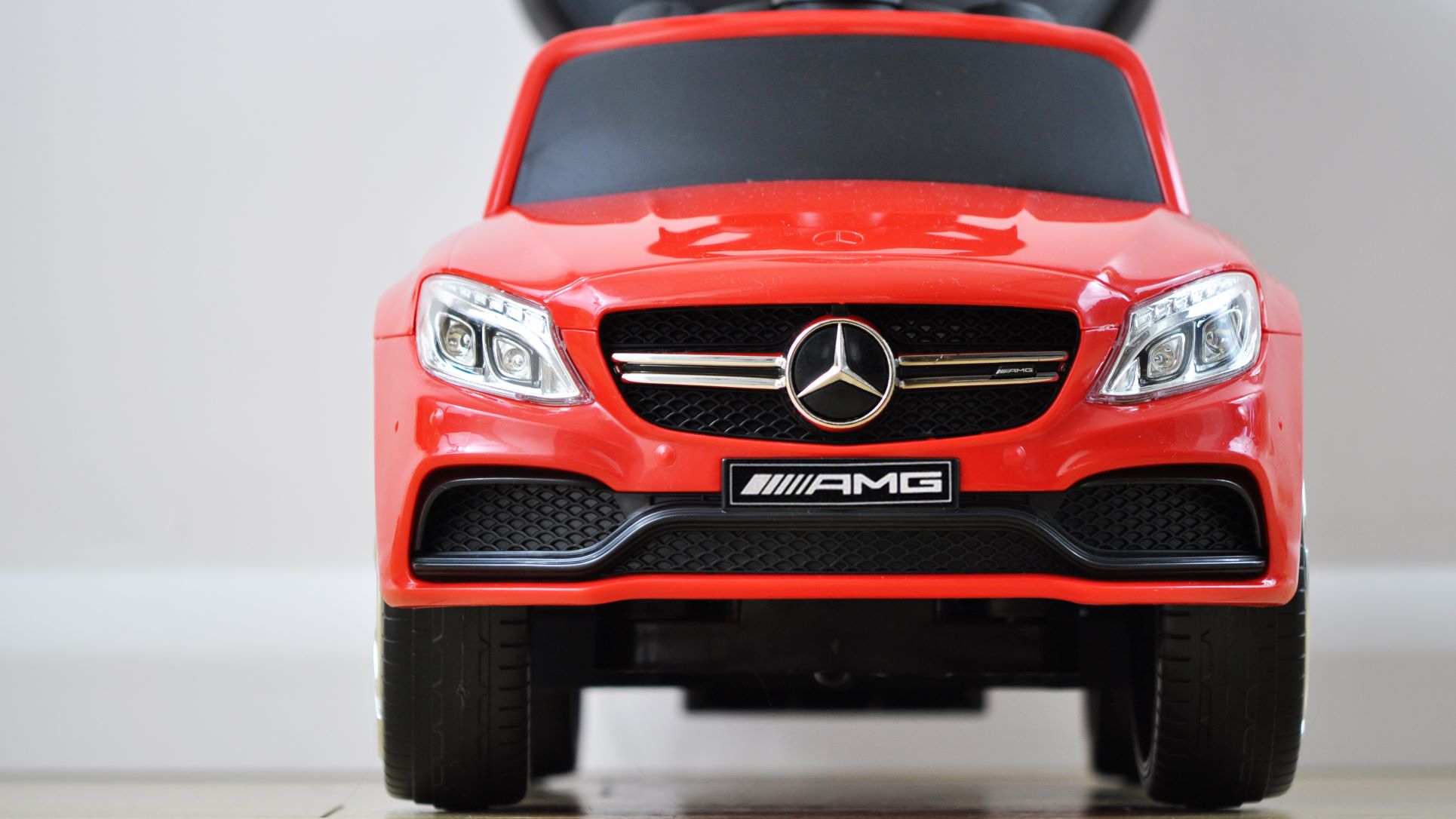 Das MERCEDES-AMG C63 Coupé S ist eine sparsamere Version des Mercedes mit Schiebegriff, ideal für selbstständigere Kinder 😉