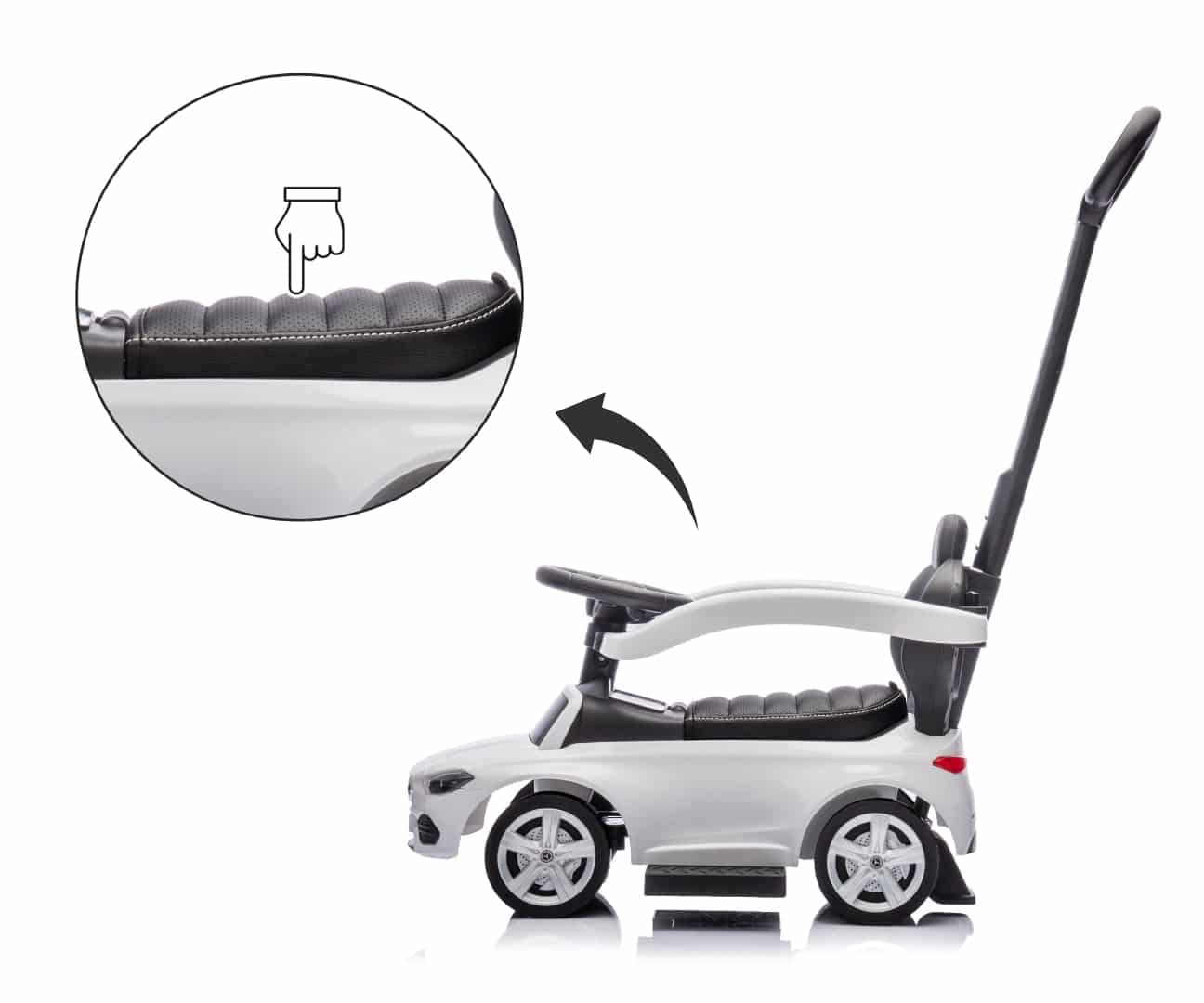 Rutschauto MERCEDES weiß C-Klasse 3in1 + Gummiräder + Kunstleder