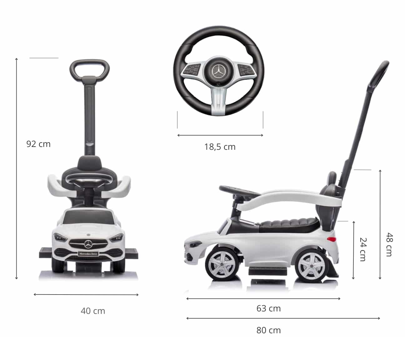 - ✅ Produkt: Milly Mally Fahrzeug mit Griff MERCEDES C-Klasse Deluxe Weiß: Geeignet für Kinder von 12 bis 36 Monaten