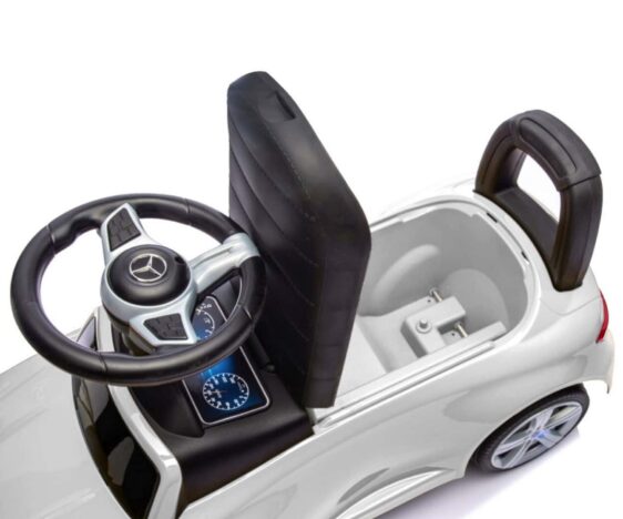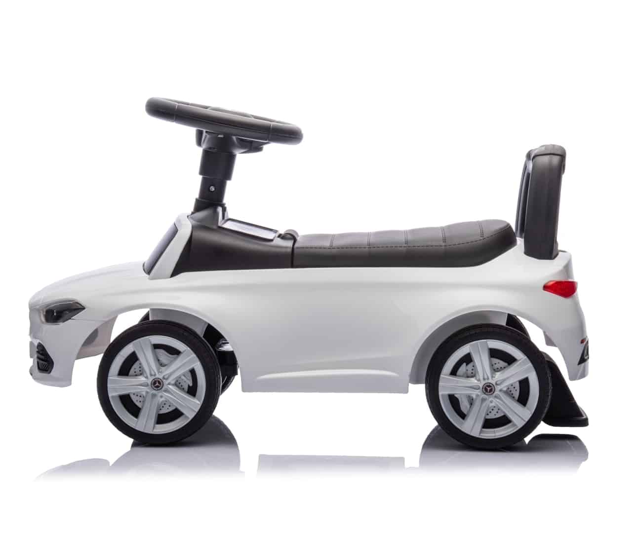✔️ Der Mercedes ist perfekt für drinnen und draußen. Die Räder mit 14 cm Durchmesser sorgen für eine sanfte Fahrt auf verschiedenen Oberflächen – von Laminatböden und Teppichen bis hin zu Gehwegen und glatten Parkwegen.