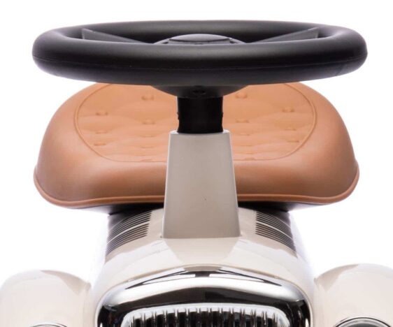 Schau dir dieses überglückliche Lächeln deines Kindes an! Das ist sein erstes Auto mit Namen. Das stylische Royce-Elektroauto ist der Beginn eines großen automobilen Abenteuers. Die elegante beige Farbe und die silbernen Zierelemente sehen aus wie ein Miniatur eines echten Autos. Weiche EVA-Schaumstoffräder sorgen für eine leise Fahrt im Haus. Das schwenkbare Lenkrad mit Hupe vermittelt Ihrem Kind das Gefühl echter Kontrolle. Nichts bereitet mehr Freude, als ein Kind stolz in einem speziell für es angefertigten Fahrzeug fahren zu sehen!
