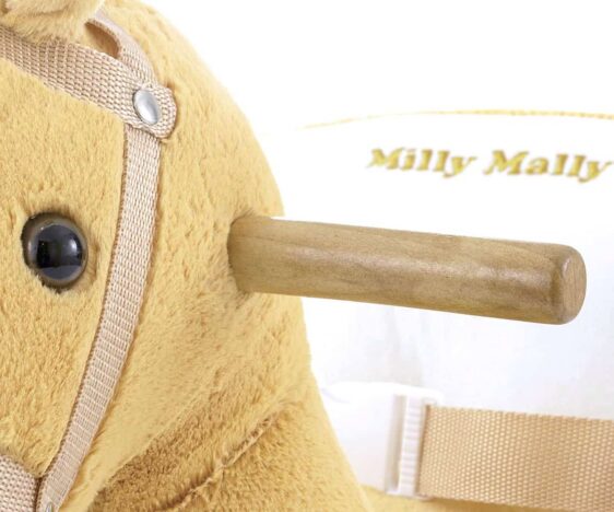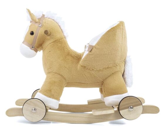 Dieses bezaubernde hellbraune Polly-Pferd wird im Nu das Herz Ihres Kindes erobern! Stellen Sie sich die pure Freude in den Augen Ihres Kindes vor, wenn es zum ersten Mal auf seinem eigenen, personalisierten Pferd sitzt! Hergestellt aus weichem Plüsch, mit einem bequemen, konturierten Sitz und Holzkufen, wird es nicht nur zu einem Spielzeug, sondern zu einem echten abenteuerlustigen Freund für jeden kleinen Reiter. Was es noch besonderer macht? Sie können den Namen Ihres Kindes auf die Rückenlehne gravieren lassen! Die sanfte Schaukelbewegung fördert den Gleichgewichtssinn, und die Möglichkeit, das Spielzeug in ein Fahrzeug mit Rädern zu verwandeln, sorgt für Abwechslung und Spielspaß. Holzgriffe vermitteln Ihrem Kind ein Gefühl von Kontrolle und Sicherheit, während interaktive Ohren mit dem Geräusch eines galoppierenden Pferdes die Fantasie anregen. Das ist nicht irgendein Schaukelstuhl – es ist der erste persönliche Schaukelstuhl Ihres Kindes, der mit ihm mitwächst – von 12 bis 36 Monaten!