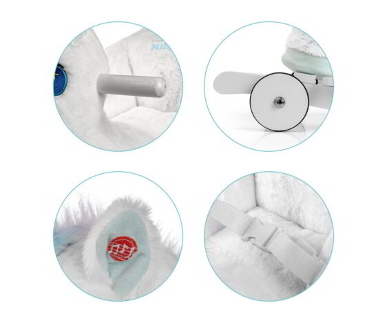 ✔️ Die Plüschoberfläche lässt sich am besten punktuell mit einem feuchten Tuch und einem milden Reinigungsmittel reinigen. Vor der Reinigung empfiehlt es sich, die Batterien aus dem Batteriefach zu entfernen. Das Material trocknet schnell und behält seine Weichheit.