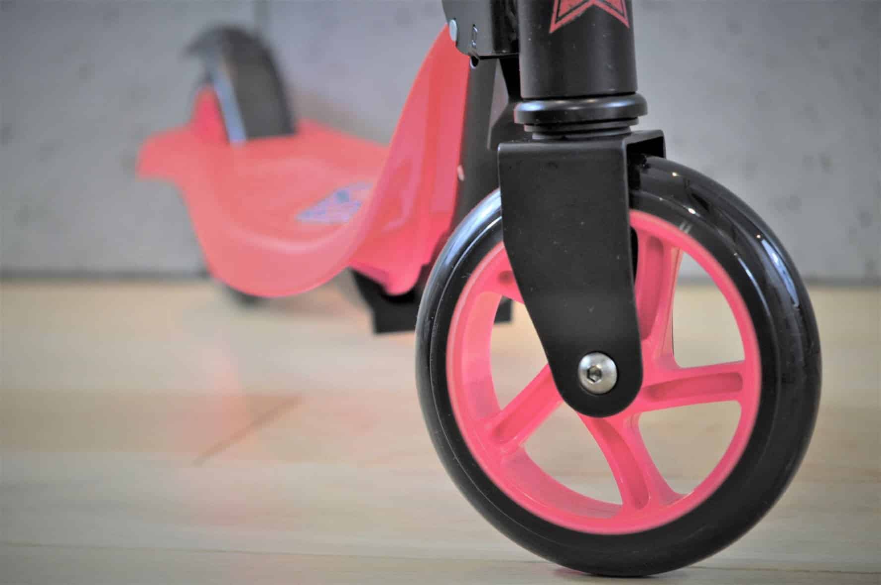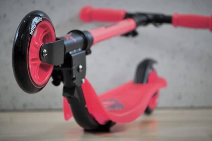 Außerdem lässt sich der Roller schnell zusammenklappen. So nimmt er zu Hause oder im Auto nicht viel Platz ein.
